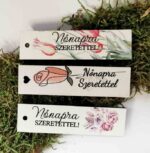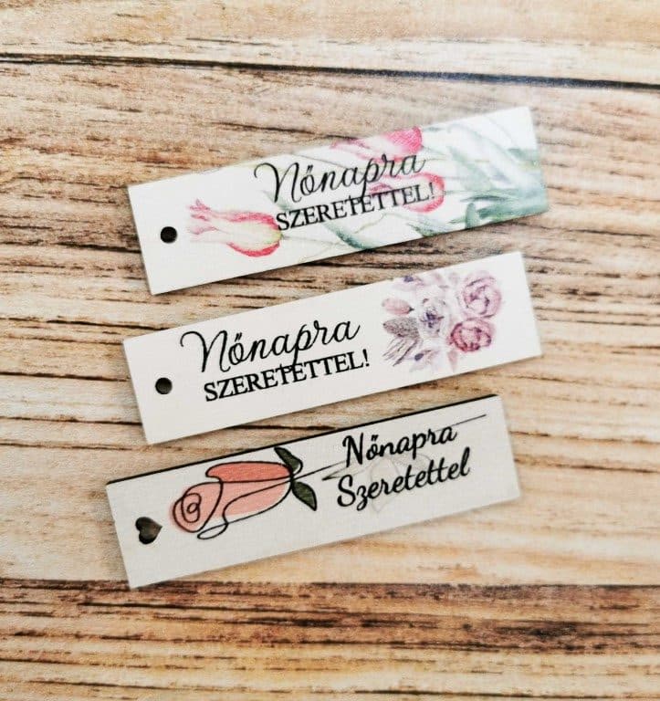 Nőnapra szeretettel feliratos tag biléta betűzők, három különféle motívummal.