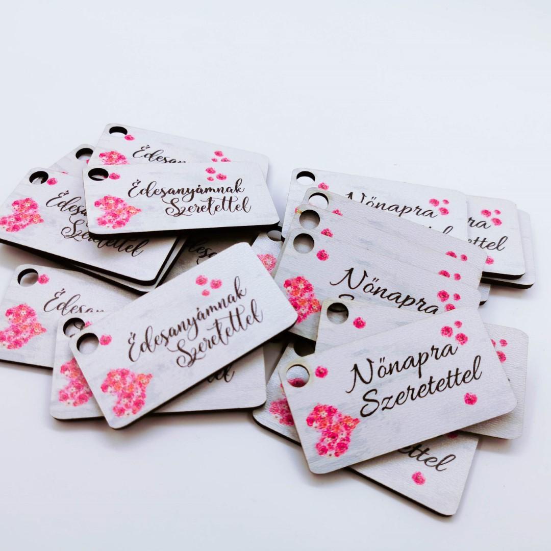 Anyák napjára szeretettel, vagy nőnapra szeretettel feliratos 3mm vastag fa biléta.