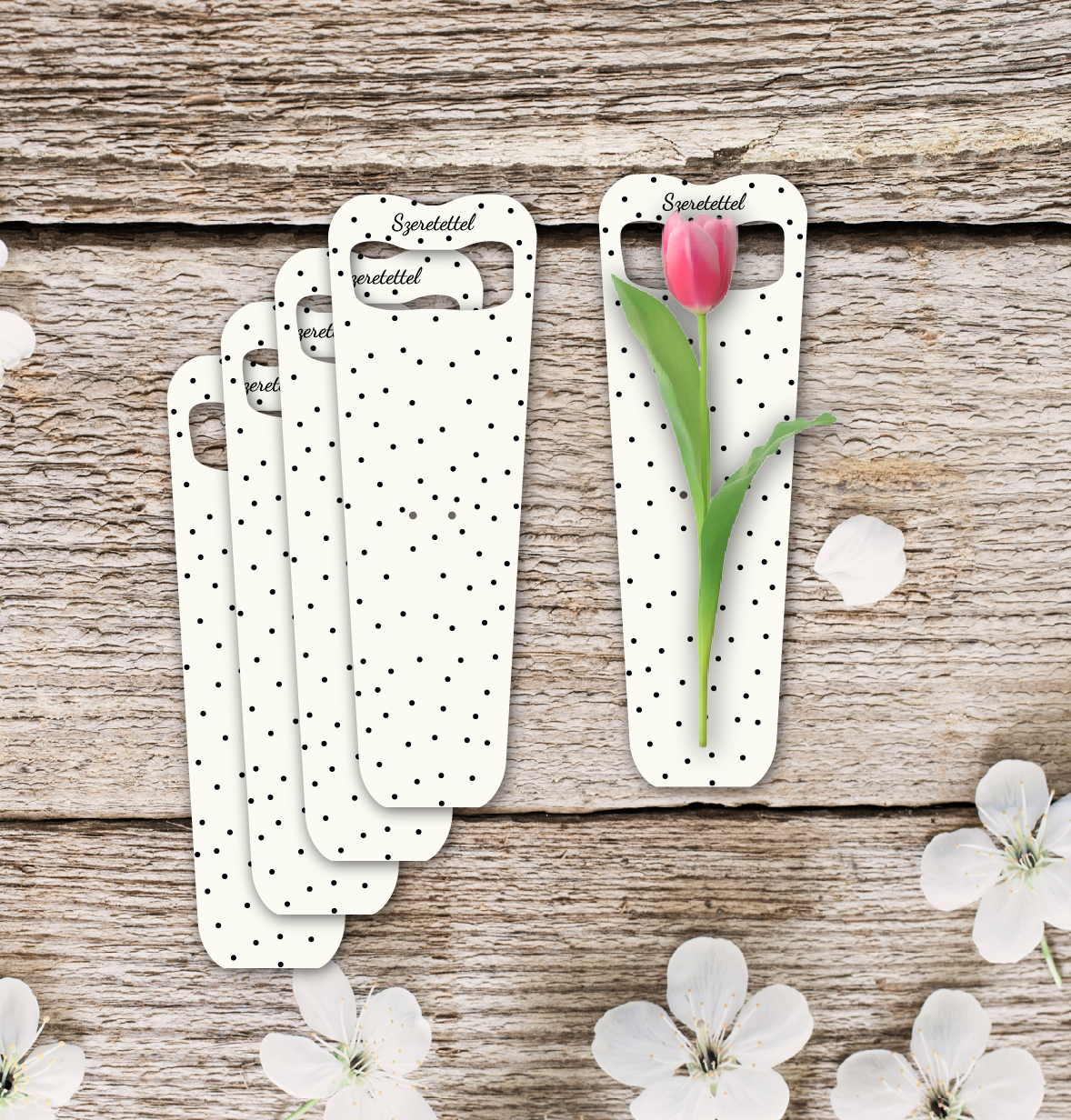 „Szálas virágtartó “Szeretettel”, 3MM VASTAG – FEKETE PÖTTYÖS, 30cm” értékelése elsőként